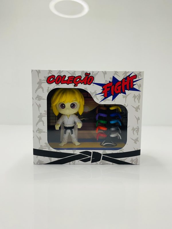 Cada boneco vem com um conjunto completo de faixas, representando diferentes níveis de graduação.