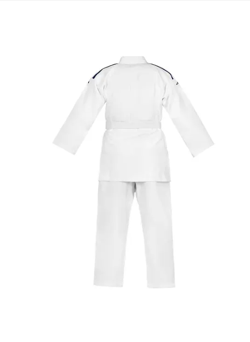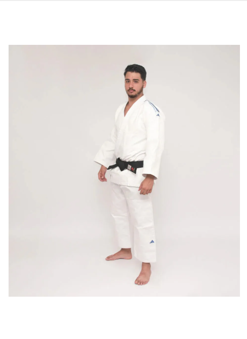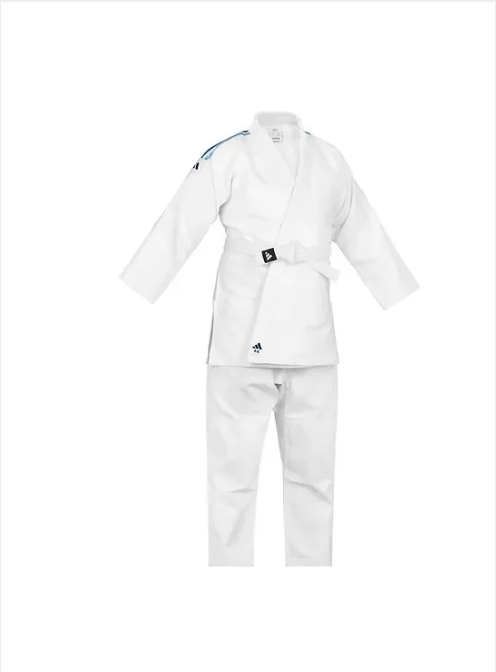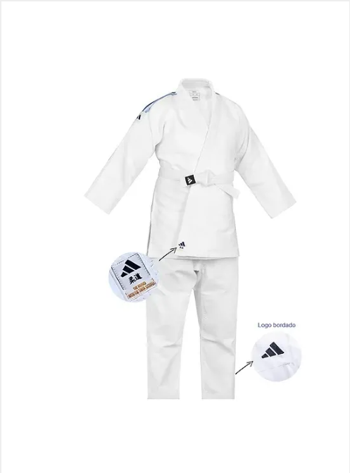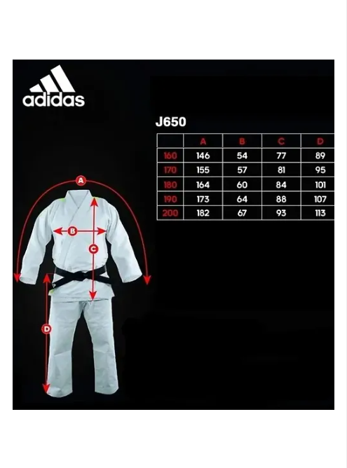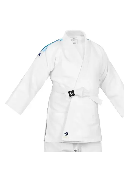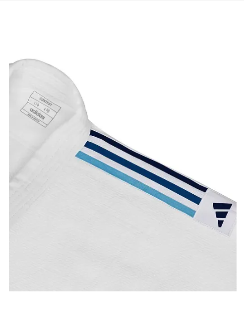 Kimono Judo Contest adidas J650 – blusão tecido trançado azul, 40% algodão e 60% poliéster, gramatura de 650 gr/m2 com múltiplos reforços, indicado para torneios e treinamentos.